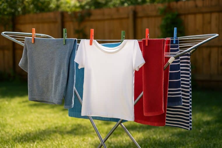 Lorsqu’il pleut ou qu’il fait froid, on utilise volontiers le sèche-linge ou le chauffage pour faire sécher son linge. Mais en période de fortes températures et de soleil, les conditions sont idéales pour économiser de l’électricité. Il suffit de poser le linge sur un étendoir à l’extérieur.