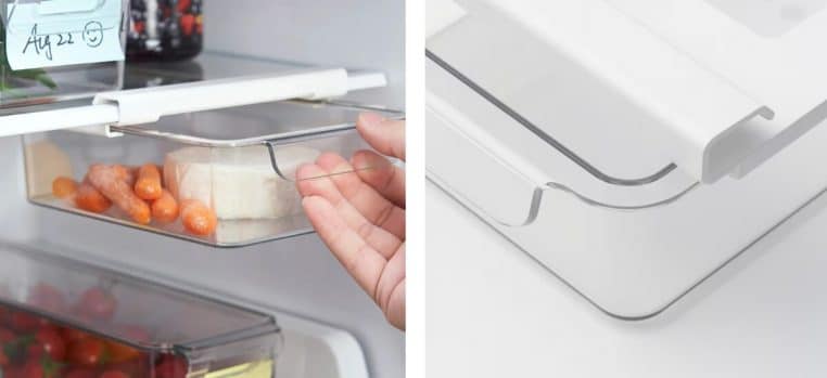 Grâce à ses pinces intégrées, la Klippkaktus se fixe en quelques secondes seulement sous les étagères de votre frigo, sans effort ni outil. « Les rails coulissants permettent d’accéder facilement au contenu de la boîte simplement en la tirant vers soi » indique l’enseigne sur son site internet. « Les rails sur la structure de la boîte sont adaptés à la plupart des clayettes » et les ventouses maintiennent la boîte « bien en place ».