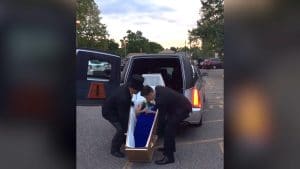 Elle vient en soirée… dans un cercueil ! (vidéo)