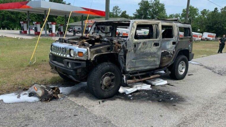 Un Hummer réduit en cendres après avoir fait le plein d’essence par crainte de pénurie