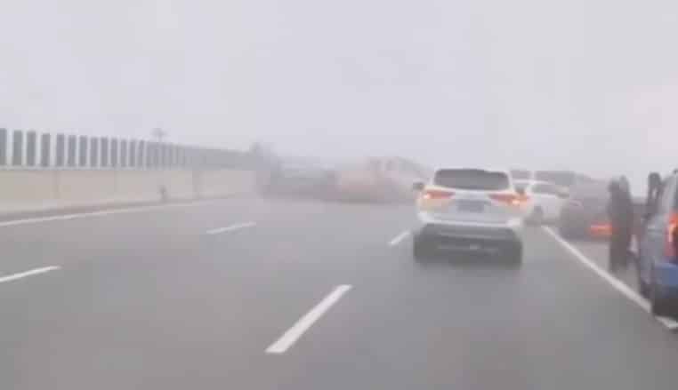 Un automobiliste a filmé une scène lunaire sur ce qui semble être une voie rapide. Alors qu’il y a du brouillard et que la visibilité est limitée, les automobilistes roulent à vive allure. Ce qui a causé un important carambolage, bloquant la route.