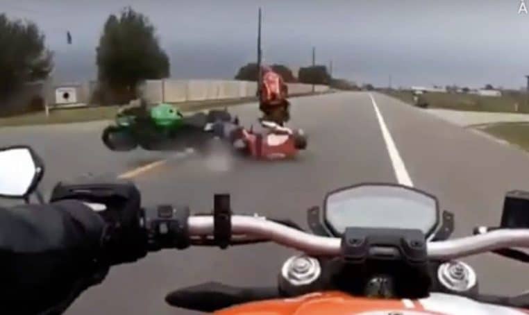 La vidéo prise par la Gopro d’un motard est impressionnante. Alors qu’il roulait sur une voie rapide, il est témoin d’un accident de moto. Un motard tombe en face de lui et en fait tomber un autre.