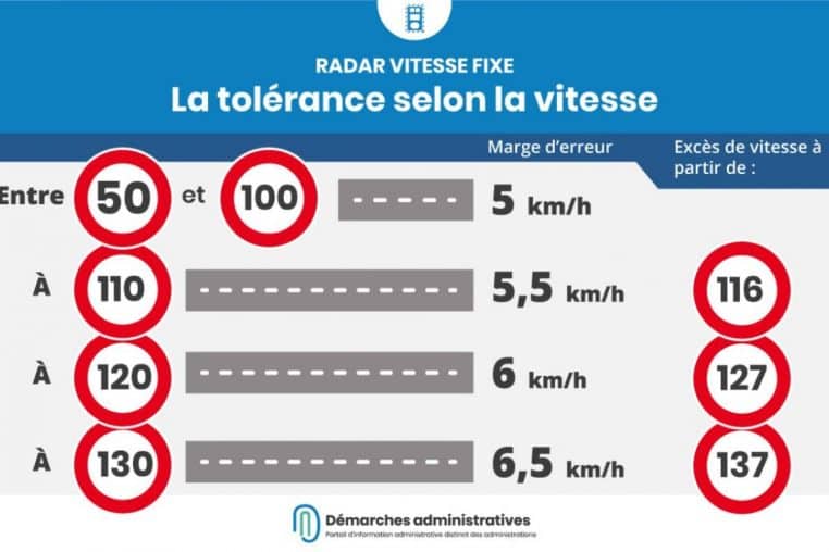 Et maintenant ? Les nouvelles marges pour 2025 impliqueront une plus grande tolérance pour les radars fixes. L’écart passe à 12 km/h pour les vitesses inférieures à 100 km/h. Exemple : si vous vous faites flasher à 90 km/h au lieu de 80 km/h, pas d’amende. En effet, vous êtes en dessous des 12 km/h de tolérance.