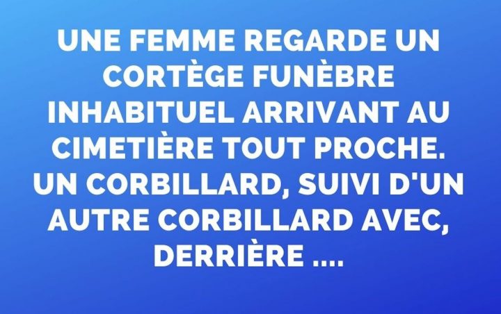 Blague du jour : Une femme regarde un cortège funèbre inhabituel arrivant au cimetière tout proche