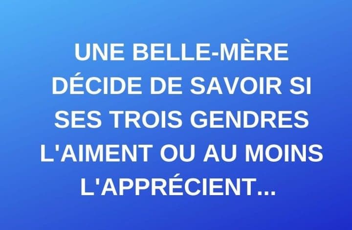 Blague du jour : Une belle-mère décide de savoir si ses trois gendres l’aiment ou au moins l’apprécient…