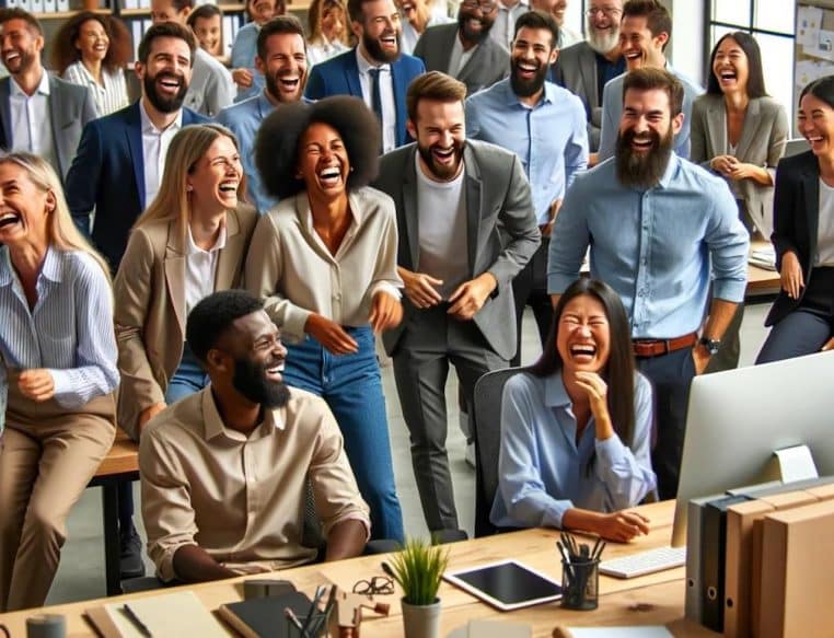 Ses collègues éclatent de rire, imaginant leur patron essayant de faire la même chose.