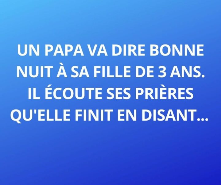 Un papa va dire bonne nuit à sa fille de 3 ans. Il écoute ses prières qu’elle finit en disant :