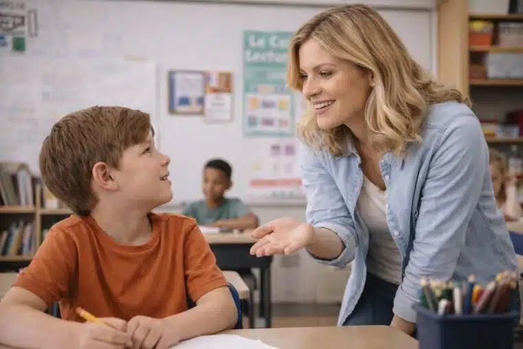 La maîtresse sourit et lui demande :