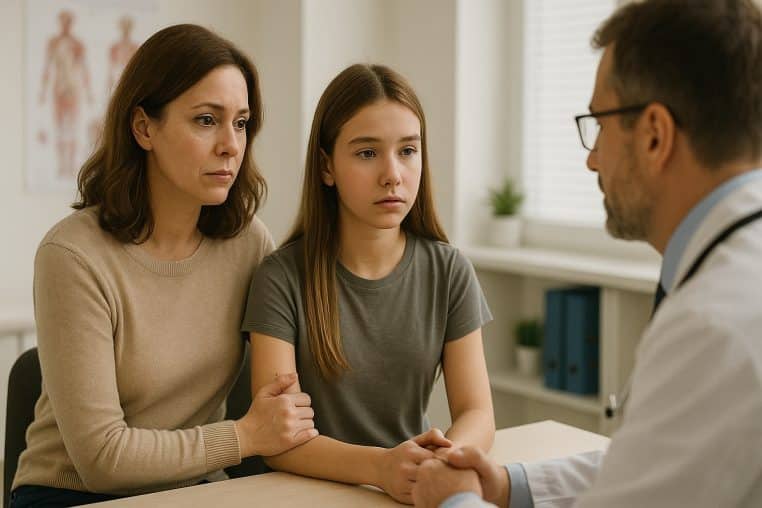 Le médecin examine longuement la jeune fille, puis dit à la mère :
