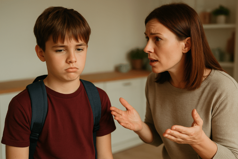 Toto rentre de l’école. Sa mère, qui sait qu’il avait un contrôle ce jour, lui demande :
