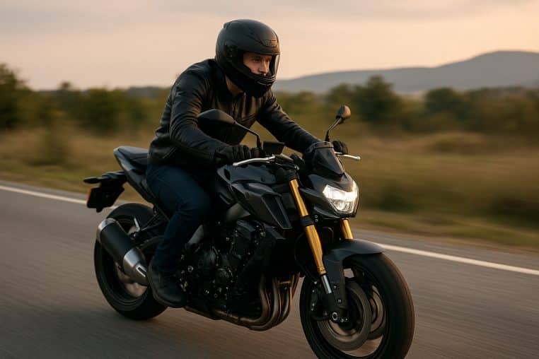 Blague du jour : Un type fait un tour avec sa nouvelle moto ultra puissante