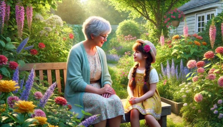 Une mamie et sa petite fille sont dans le jardin du domicile familial. La fillette, un peu trop curieuse, n’arrête pas de bassiner sa grand-mère :