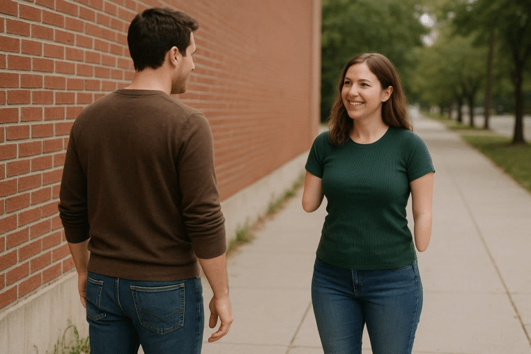– Je viens d’aller au supermarché et j’ai vu une femme qui n’avait plus de bras ; elle avait un petit carton sur lequel était marqué : « JE NE VEUX NI ARGENT, NI NOURRITURE ».