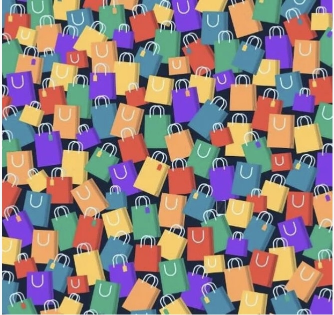 Sur l’image ci-dessous, des sacs de toutes les couleurs. Le défi est simple : retrouvez le téléphone portable perdu au milieu de cet amas de sacs.