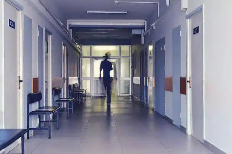 Un homme se promène à côté de l’enceinte d’un hôpital psychiatrique