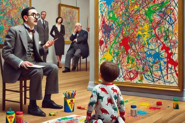 Dans une galerie d’art ultramoderne à New York, l’excitation est à son comble. Les projecteurs illuminent le centre de la pièce où trône une toile de 2 mètres sur 2, recouverte d’un déluge de couleurs éclatées. On y voit des lignes tortueuses, des taches grossières, et même ce qui ressemble à une empreinte de main maladroite en plein milieu. Le titre de l’œuvre, accroché en lettres dorées : « La Découverte de l’Infini ».