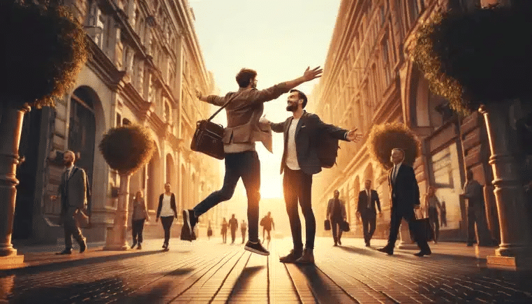 C’est un homme qui croise un de ses copains dans la rue :