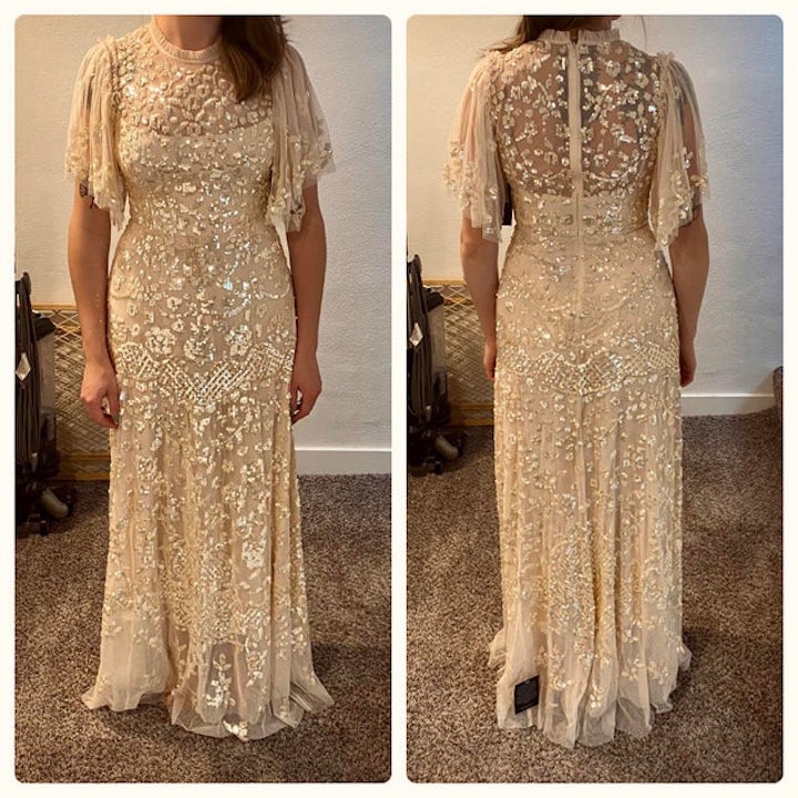 27. Une robe champagne et ivoire trouvée via Poshmark pour 500$
