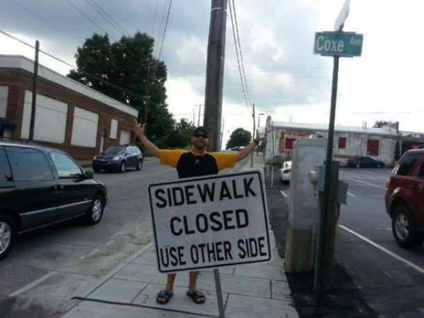 Trottoir fermé utilisez l’autre côté….mmmm…non !