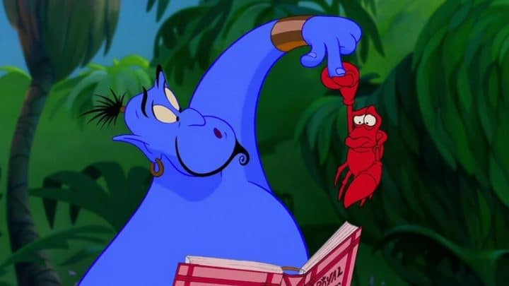 Le génie dans Aladdin se fait pincer par Sébastien, le crabe de La Petite Sirène