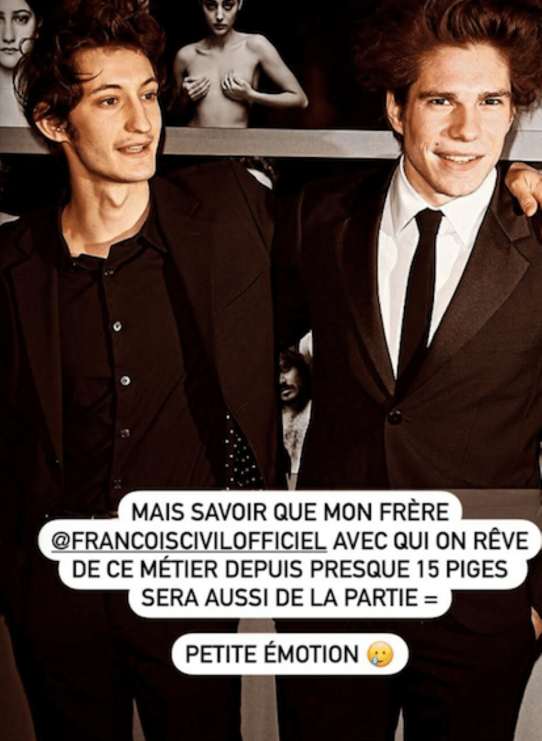 « Savoir que mon frère François Civil, avec qui on rêve de ce métier depuis presque quinze piges sera aussi de la partie = petite émotion » , a-t-il déclaré dans une photo sur laquelle il apparaît justement au côté de son ami. Ils n’ont pas fini de nous faire rêver !