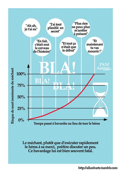 Allan Barte, un auteur de bande dessinée française, s’est amusé à illustrer la plupart des clichés des films hollywoodiens à travers des affiches qui montrent les clichés que l’on retrouve très (trop) souvent dans ces films ou séries. Et en particulier ceux que l’on retrouve dans les films d’action, que vous allez reconnaître sans difficulté et qui vont faire sourire.