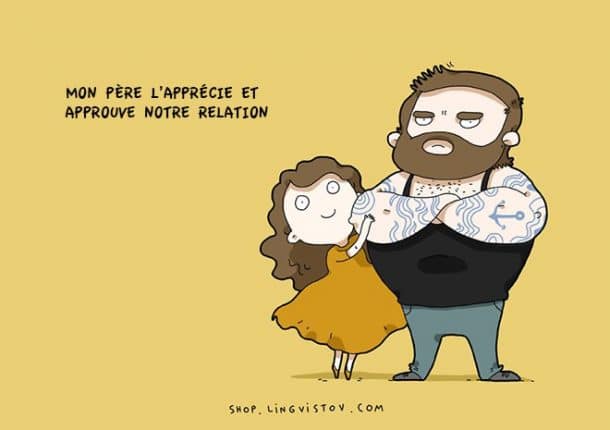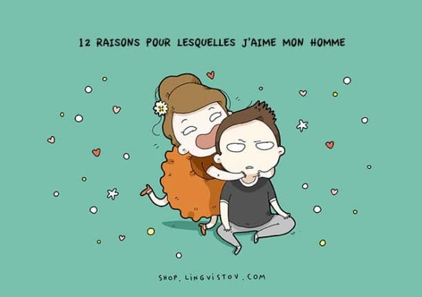S’il vous fallait une seule (bonne) raison d’aimer votre homme, laquelle choisiriez-vous ? Les artistes de Lingvistov, en ont trouvé 12. Je ne dirais pas qu’il s’agit là de bonnes raisons, mais elles ont au moins le mérite d’être extrêmement drôles. Et puis il faut bien avouer que certaines ne sont pas si éloignées de la réalité. L’artiste a donc imaginé 12 raisons pour lesquelles une fille aime son copain. Il s’agit donc là de petits faits du quotidien. Et nous sommes certainement nombreux et nombreuses à se reconnaître un peu en chacune de ces illustrations.