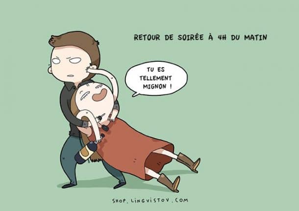 Ah l’amour ! Quel beau sentiment. Même si nous n’avons pas tous la même notion de l’amour, je pense que ces illustrations ont mis tout le monde d’accord. Et vous, ces illustrations vous parlent-elles si vous êtes (ou avez été) en couple ? Je ne sais pas si c’est une très bonne idée de vous le dire, mais parfois, il est important de savoir se mettre à nu… L’illustration n°4 a été la première raison me concernant… Je pense que s’il est capable de te supporter alors que tu es bourrée, et ce, dès votre première sortie ensemble, c’est qu’il en supportera de bien pire. C’est un détail qui compte, je suis désolée.Allez, maintenant c’est à vous d’avouer vos petits moments honteux ! Et on ne triche pas.