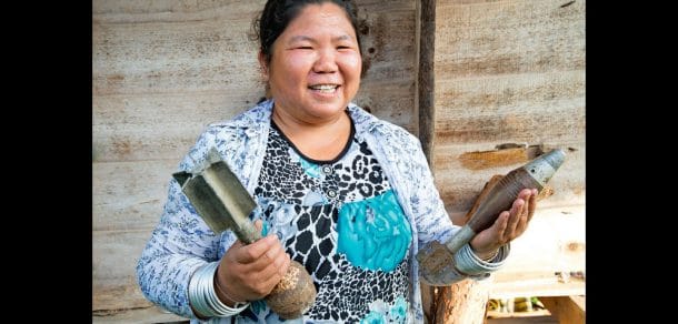 Article 22 est une société spécialisée dans la fabrication de bijoux avec des fragments de bombe. Mais au-delà de l’esthétique se cache en réalité une cause bien plus éthique. En effet, les fragments en question sont récupérés à Ban Naphia, au Laos. Et si les bombes sont retrouvées en masse à cet endroit-là, c’est parce que les États-Unis en avaient semé plus de 2 millions de tonnes durant la guerre du Vietnam. Le problème, c’est qu’aujourd’hui, on estime qu’environ 30 % de ces bombes n’ont pas explosé, malgré l’impact. Ce qui rend cette zone extrêmement dangereuse et donc, inexploitable pour les agriculteurs locaux. Des démineurs ont donc du être formés et les villageois doivent les prévenir en cas de découverte d’un obus.