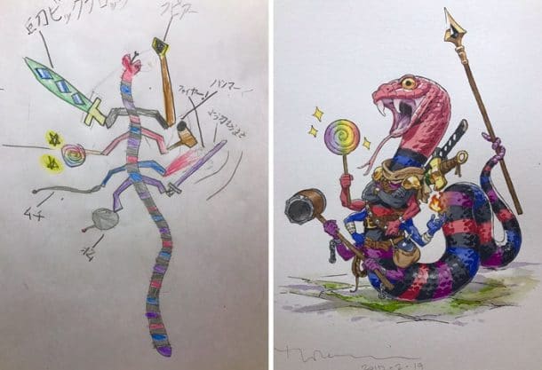 Thomas Romain est un père de famille français résidant près de Tokyo et travaillant en tant que mangaka. Ayant travaillé sur différents projets (Space Dandy, Basquash ! , Aria…), ce jeune père de famille s’en est construit un, un peu plus personnel : celui de retaper les dessins de son fils pour en faire de vrais dessins manga. Le résultat spectaculaire qui en découle enflamme véritablement la toile. On vous laisse donc admirer les œuvres de ce « super papa » qui donne vie à l’imagination de son fils. Parfait pour le motiver et lui montrer la voie.