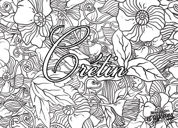 Alors aujourd’hui, défoulons-nous d’une façon constructive et intelligente. Pas comme moi quoi. Du coup, je vous propose de vous intéresser à ce livre de coloriage d’un genre un peu particulier. Ne partez pas, je vous promets que c’est marrant. C’est donc un livre de coloriage destiné aux adultes, mais il n’a vraiment rien de banal. Et pour cause, lorsque vous coloriez les formes du cahier, un mot sympa se dévoile au centre de la feuille. Non en vrai, c’est un très vilain mot.