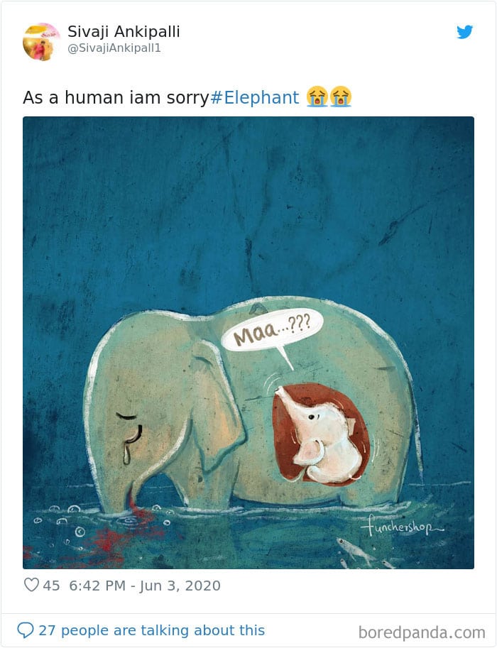 Des artistes rendent hommage à l’éléphante enceinte morte dans d’atroces souffrances à travers des dessins poignants