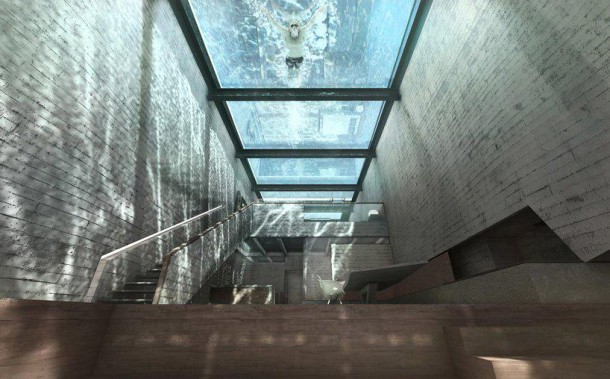 Trois murs en béton incrustés dans la roche, en arrière et sur les côtés et une façade en verre en avant composeraient la demeure. Le toit serait orné d’une piscine, laissant ainsi la lumière du soleil pénétrer dans toute l’habitation tout en restant à l’abri de sa chaleur. La façade avant pourrait nous faire profiter d’une vue magnifiquement à couper le souffle sur la mer et son horizon se confondant avec le bleu du ciel, mais également la vue du ciel à travers le bleu de la piscine au-dessus de nos têtes. La lumière filtrée par l’eau cristalline offrirait de superbes reflets bleutés dans tout l’intérieur. Le design intérieur serait aussi époustouflant que l’ensemble vu de l’extérieur.