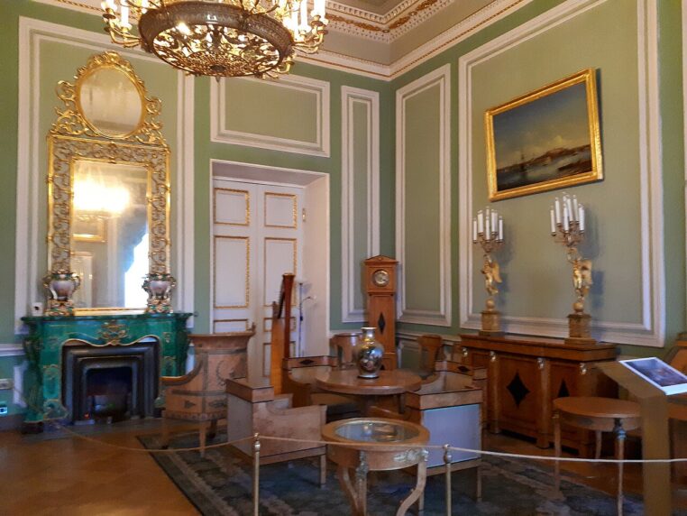 Une pièce verte élégante illustre le lien naturel entre le vert, le bois et les accents dorés. Crédit : GAlexandrova.