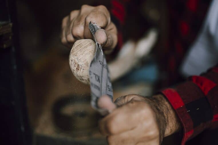 Le bois doit être sain, propre et bien préparé. Le ponçage n’a pas seulement une fonction esthétique. Il permet aussi de remettre la surface à nu, de corriger d’ancienne finitions et d’améliorer l’accroche de la protection finale. Wikimedia Commons montre d’ailleurs, à travers plusieurs visuels de travail du bois, à quel point cette étape reste décisive dans les projets de réemploi.