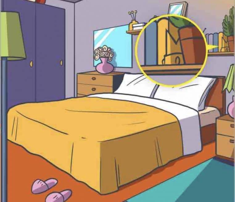 L’image ci-dessous représente une chambre. Lit, fleurs, chaussons, tout paraît pour le moins normal. Pourtant, cette chambre n’est pas à n’importe qui, c’est une reine qui l’habite. Saurez-vous alors capable d’en trouver la preuve dans l’image en découvrant l’endroit où elle cache sa couronne ?