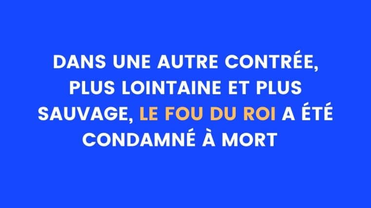 Dans une autre contrée, plus lointaine et plus sauvage, le fou du roi a été condamné à mort : le choix du supplice lui est offert, mais il est peu large : pendaison ou noyade. Le condamné doit déclarer quelque chose : si ce qu’il affirme est vrai, il sera pendu ; et si c’est faux, il sera noyé. Mais notre fou a trouvé une affirmation qui empêchera qu’on l’exécute.