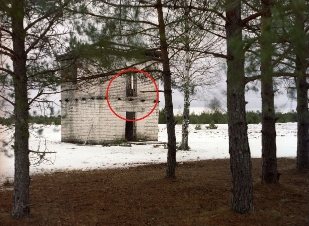 L’image ci-dessous dévoile un paysage enneigé avec, au milieu, un bâtiment qui semble abandonné. Dans cette scène, se cache pourtant une personne. Il s’agit d’un tireur d’élite. Au vu de son métier, il sait bien se planquer.
