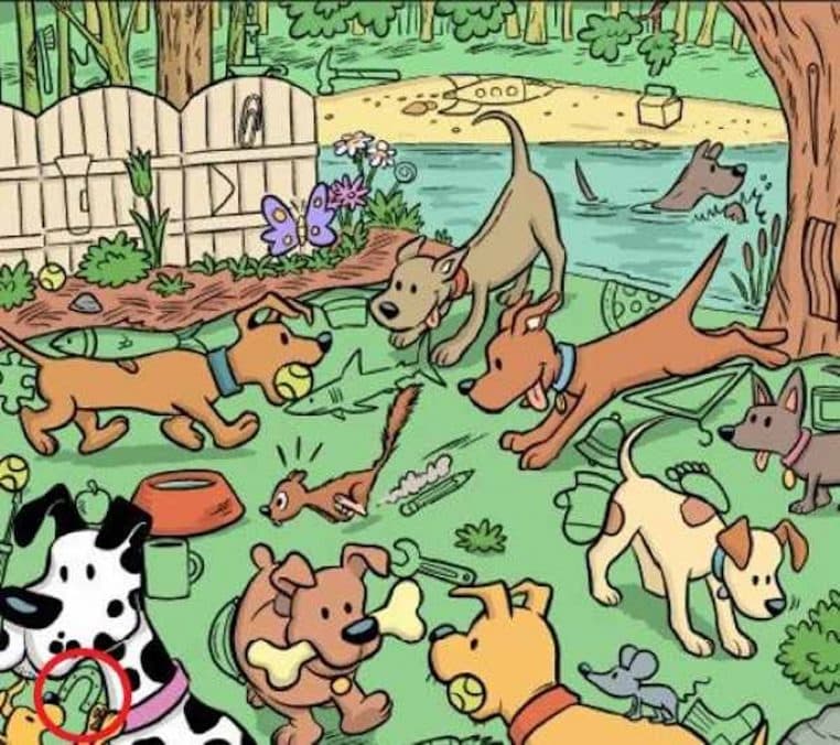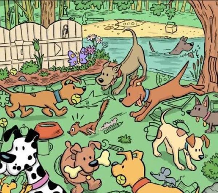 L’image ci-dessus représente un parc dans lequel de nombreux chiens s’amusent. Mais parmi toutes ces boules de poils, un aimant s’est incrusté. Saurez-vous découvrir où il se cache ? Soyez vif puisque vous ne disposez que de 12 secondes.