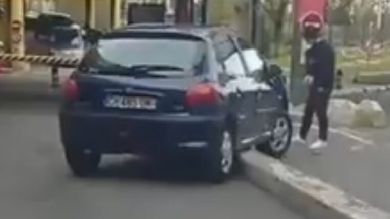 Instant karma : un automobiliste qui n’a pas voulu payer 3€ au parking s’est retrouvé coincé sur la bordure d’un trottoir (vidéo)