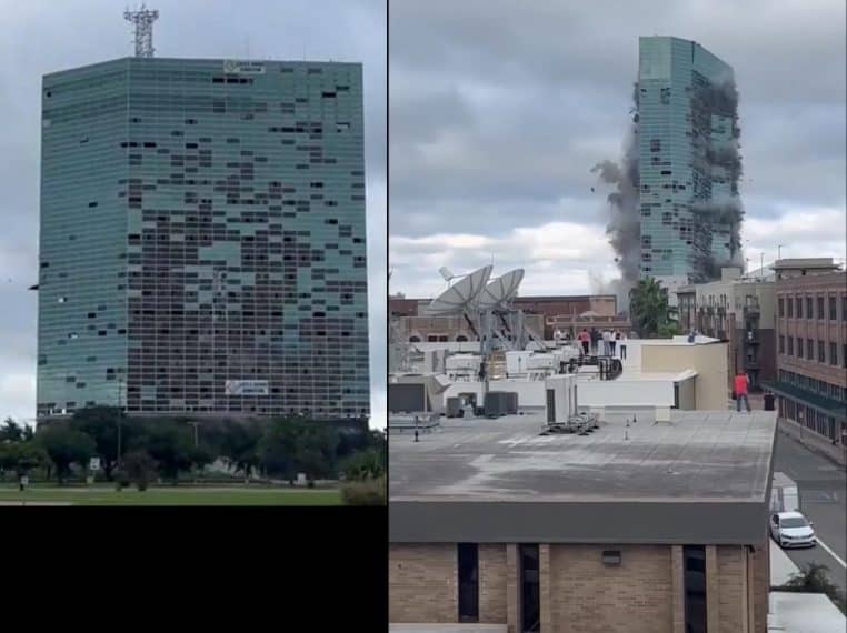 Cette tour de bureaux de 22 étages, laissée à l’abandon depuis les ouragans Laura et Delta en 2020, a enfin disparu après une démolition contrôlée qui a pris à peine quelques secondes.