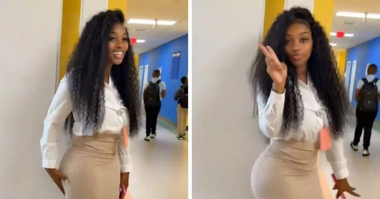 Au moment de la rédaction de cet article, la vidéo de l’enseignante a atteint près de 5 millions de vues. En cause, sa jupe couleur crème que certaines personnes qualifient de « trop moulante ». En plus de la pièce qui fait polémique, elle a mis un chemisier ajusté et des escarpins à talons. Elle semble avoir hâte d’entamer l’année scolaire, puisqu’elle danse un peu !
