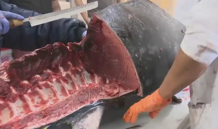 Des pêcheurs ont capturé un gigantesque thon : près de 320 kilos en Gaspésie, ils ont vendu leur prise en Estrie. Le poisson est arrivé mardi 7 septembre 2021, dans l’après-midi, au Marché de poissons de Sherbrooke. « C’est le plus gros poisson que nous avons jamais eu ici. Il a fallu une partie de l’après-midi pour découper la viande« , affirme l’acheteur du thon.