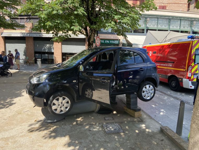 Ce mardi 28 juin, les passants au niveau de la place du Vigan à Albi ont assisté à une scène surprenante. Une voiture était perchée sur le poteau de stationnement. Mais comment a-t-elle pu se retrouver perchée là-haut ?