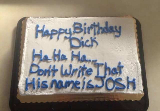« Joyeux anniversaire Dick. Ha Ha Ha… N’écrivez pas ça. Son prénom est JOSH » ou quand le pâtissier ne comprend pas que vous avez juste voulu faire une blague