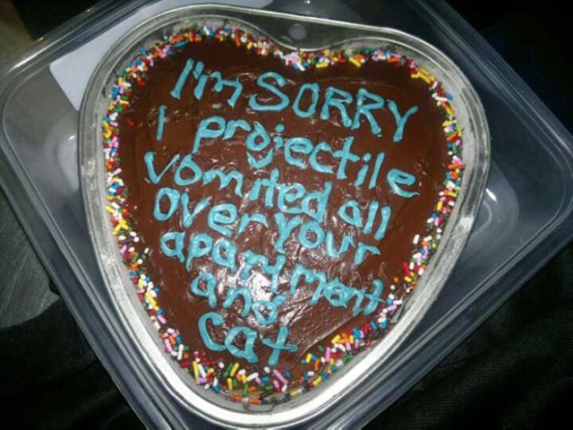 « Je suis désolé d’avoir vomi partout dans ton appartement et sur ton chat »