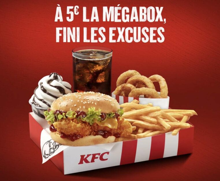 Il arrive souvent que les enseignes de fast-food tentent de faire plaisir à leurs clients. Des bons plans, des réductions ou des petits cadeaux qui font toujours plaisir. Et pour KFC, son bon plan est tout tracé. Depuis plusieurs années, l’enseigne propose une MégaBox au prix de 5 euros avec plusieurs produits à l’intérieur.