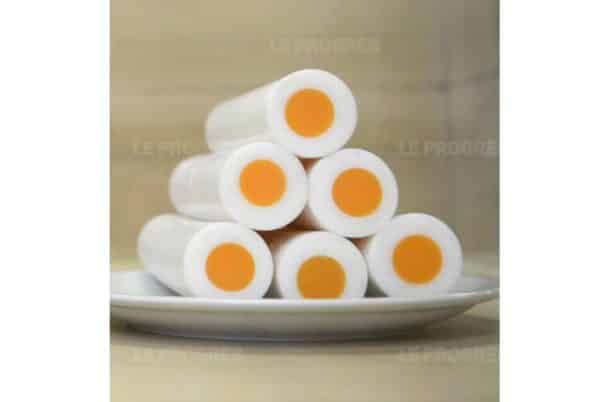 Le parcours de l’œuf commence dans une première machine où il prendra une bonne douche, pour être cassé par une deuxième, vidé de sa mixture en prenant soin de séparer le jaune et le blanc par une troisième machine. L’avant-dernière étape consiste à mixer les blanc d’un côté et les jaunes d’un autre et enfin, le tout est inséré on ne sait comment dans un tube pour être finalement cuit.