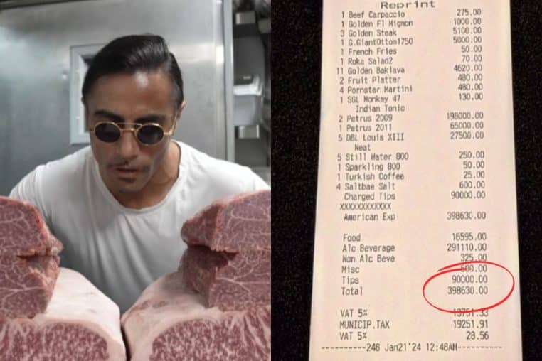 Salt Bae est un cuisinier et boucher devenu très célèbre sur les réseaux sociaux. Sauf que les plats qu’il sert dans son établissement sont un peu chers. Et ce n’est rien de le dire. Regardez l’addition payée par ces clients, c’est indécent.