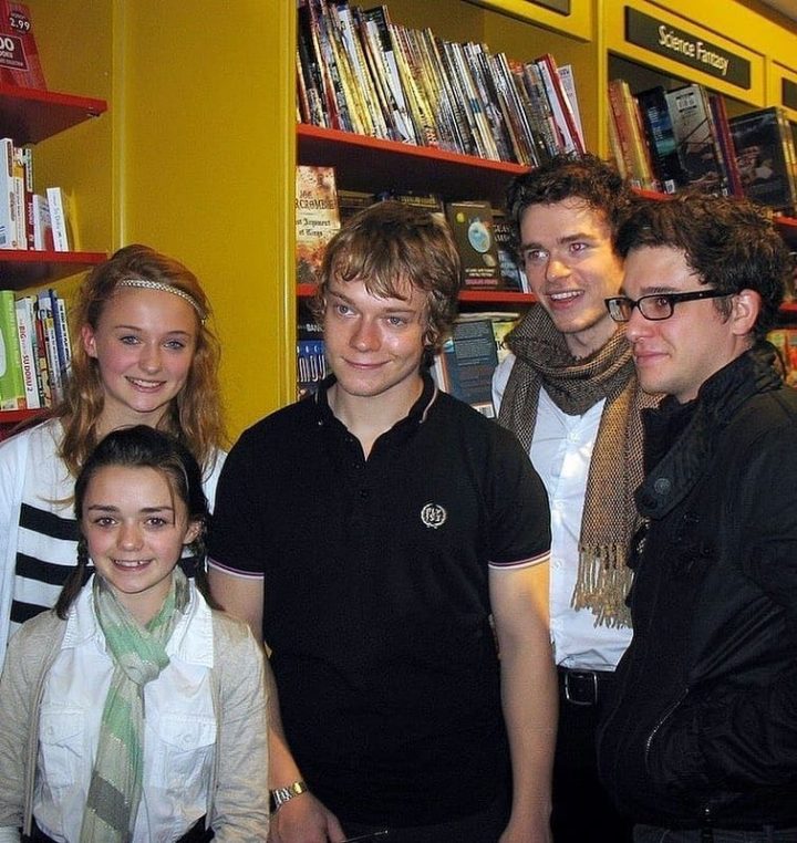 Sophie Turner, Maisie Williams, Alfie Allen, Richard Madden et Kit Harington lors de leur première rencontre !